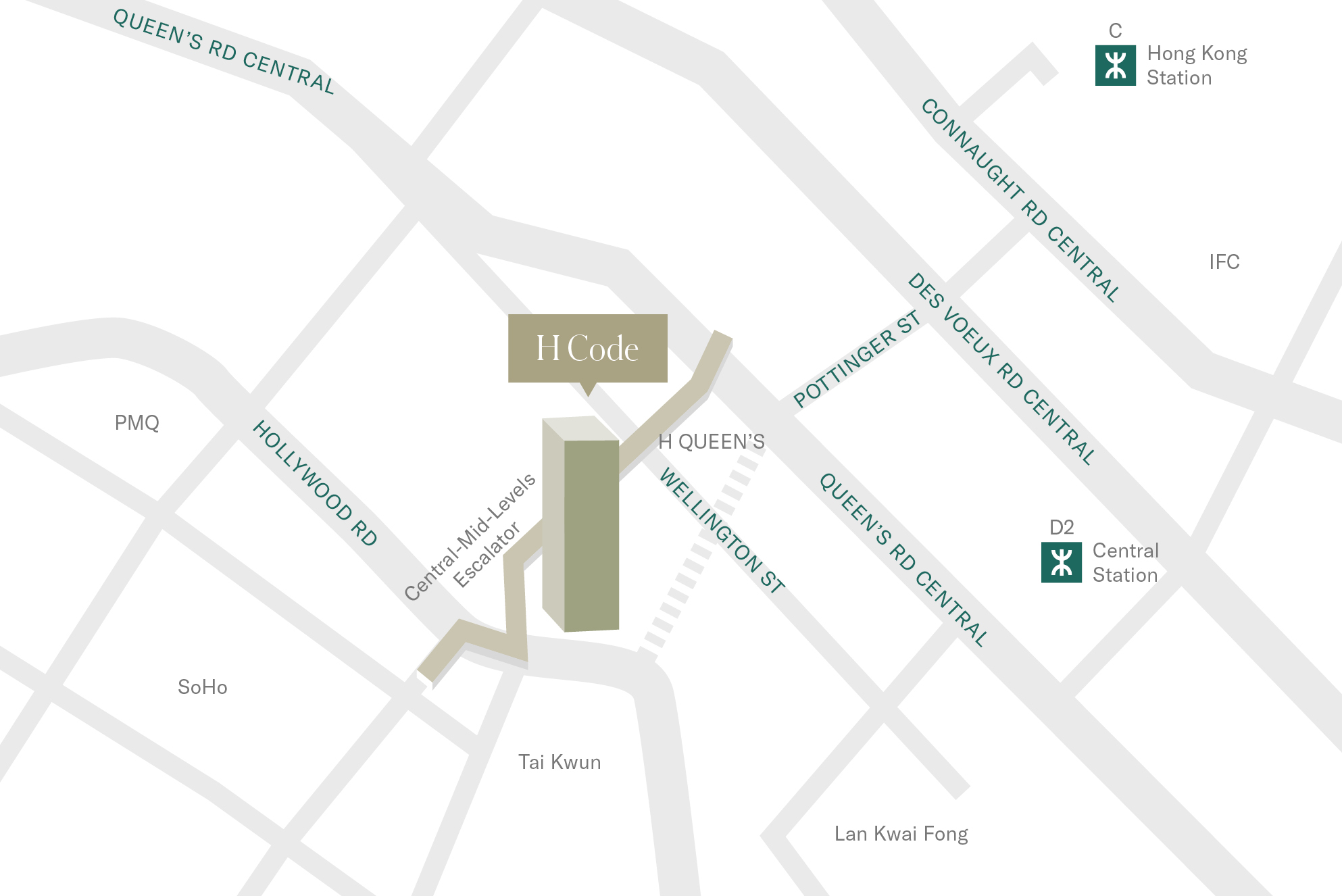 H Code is a hip new lifestyle building at the top end of Pottinger Street overlooking the former Central Police Station complex of Tai Kwun that is set to become Central’s coolest destination. H Code is an artistic & creative hub where to meet and network amid the coolest vibe in Central. This is a skyscraper development designed for the creative, work and play experience.