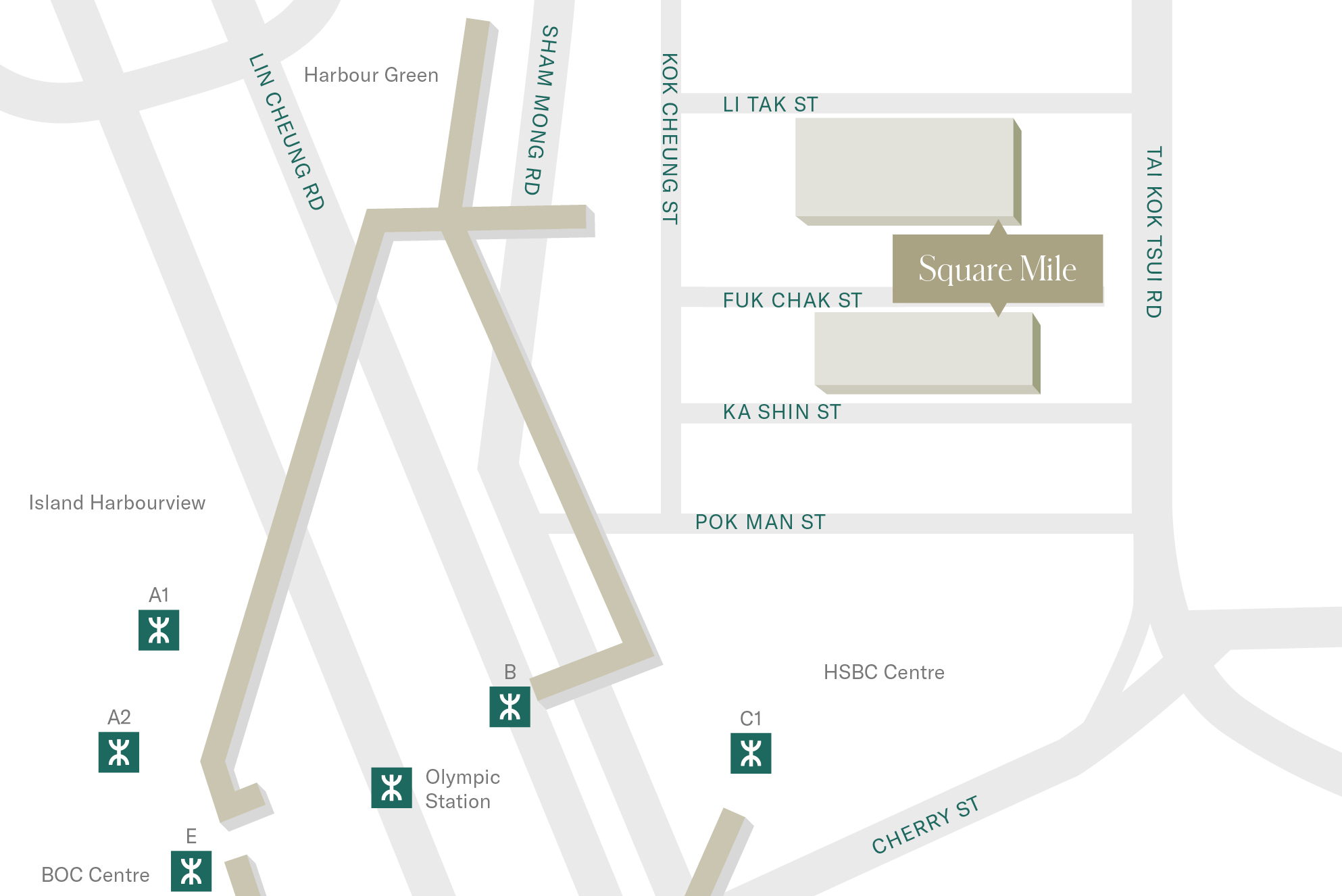 Conveniently located in West Kowloon neighbouring MTR Olympic Station, innovatory development Square Mile features a modern streamlined design, passages connecting different phases, landscaped walkways and an open-air piazza for cultural and leisure activities. This new hotspot will revitalise the streets and become an ideal living hub offering business vitality and residential relaxation.