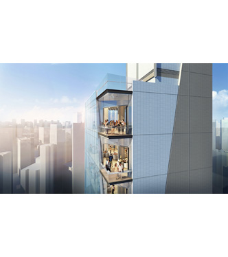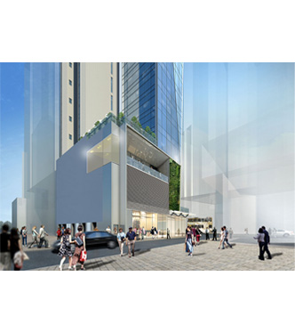 大楼外观融入夺目时尚设计及绿化元素,外墙的两大LED显示屏展现独特魅力。