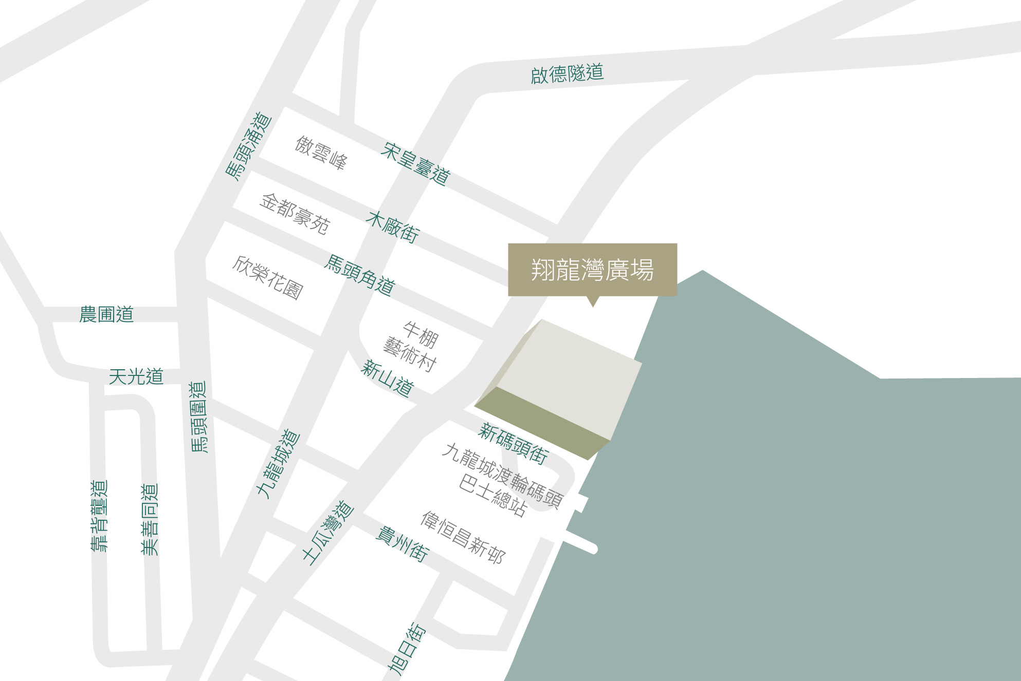 邻近的私人屋苑提供庞大的人流及消费力,因此特别适合时尚生活零售业及服务业;启德邮轮码头更是近在咫尺,为翔龙湾广场造就无限潜力,势必跃升为东九龙的魅力焦点,商机无可限量 。