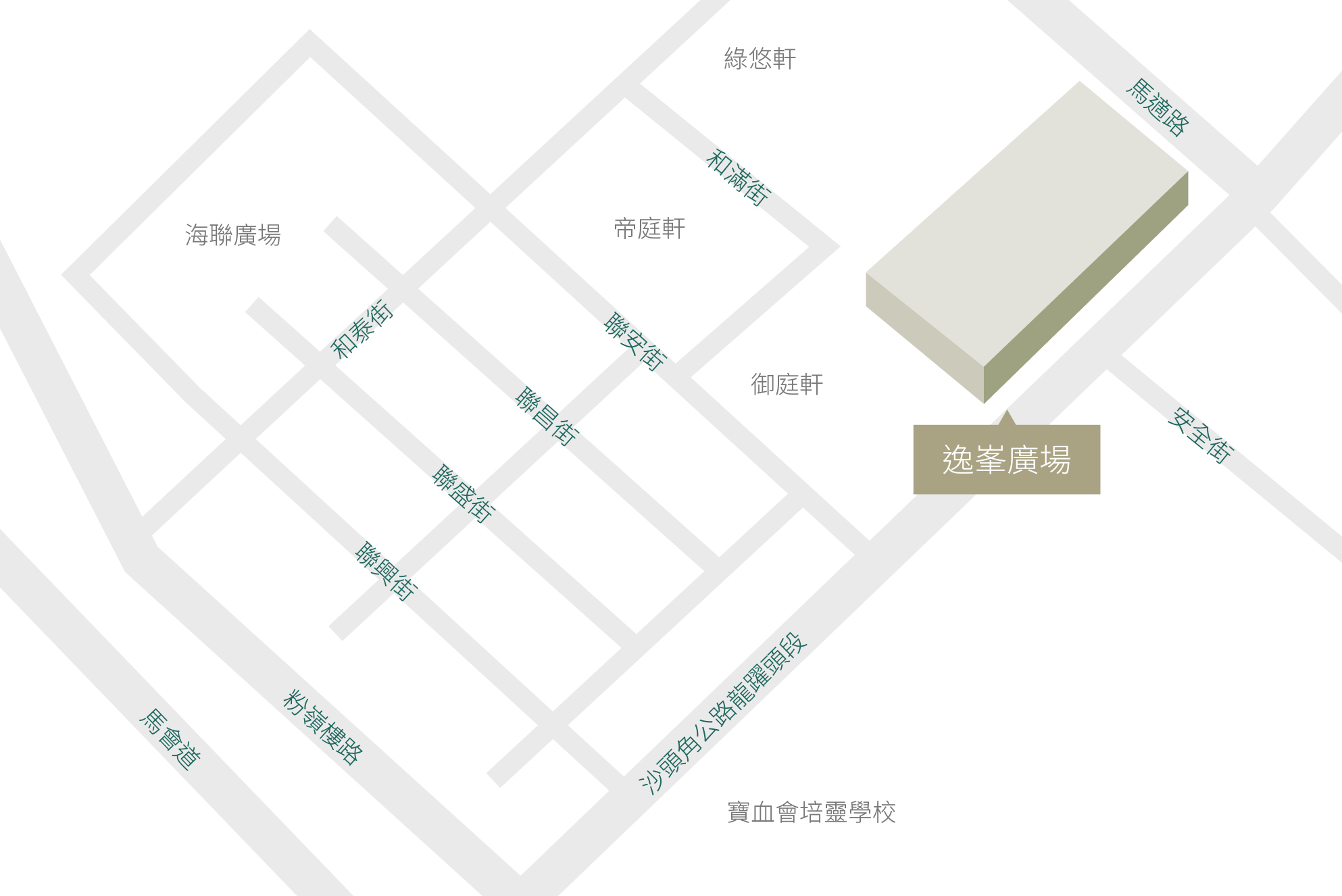 逸峯广场位处粉岭联和墟沙头角公路(龙跃头段)及马适路交界的核心地段,将成为区内之购物消闲热点。逸峯广场上盖为住宅项目「逸峯」,商场毗邻多个大型住宅屋苑,包括帝庭轩、御庭轩及绿悠轩–造就庞大稳定的人流量。
