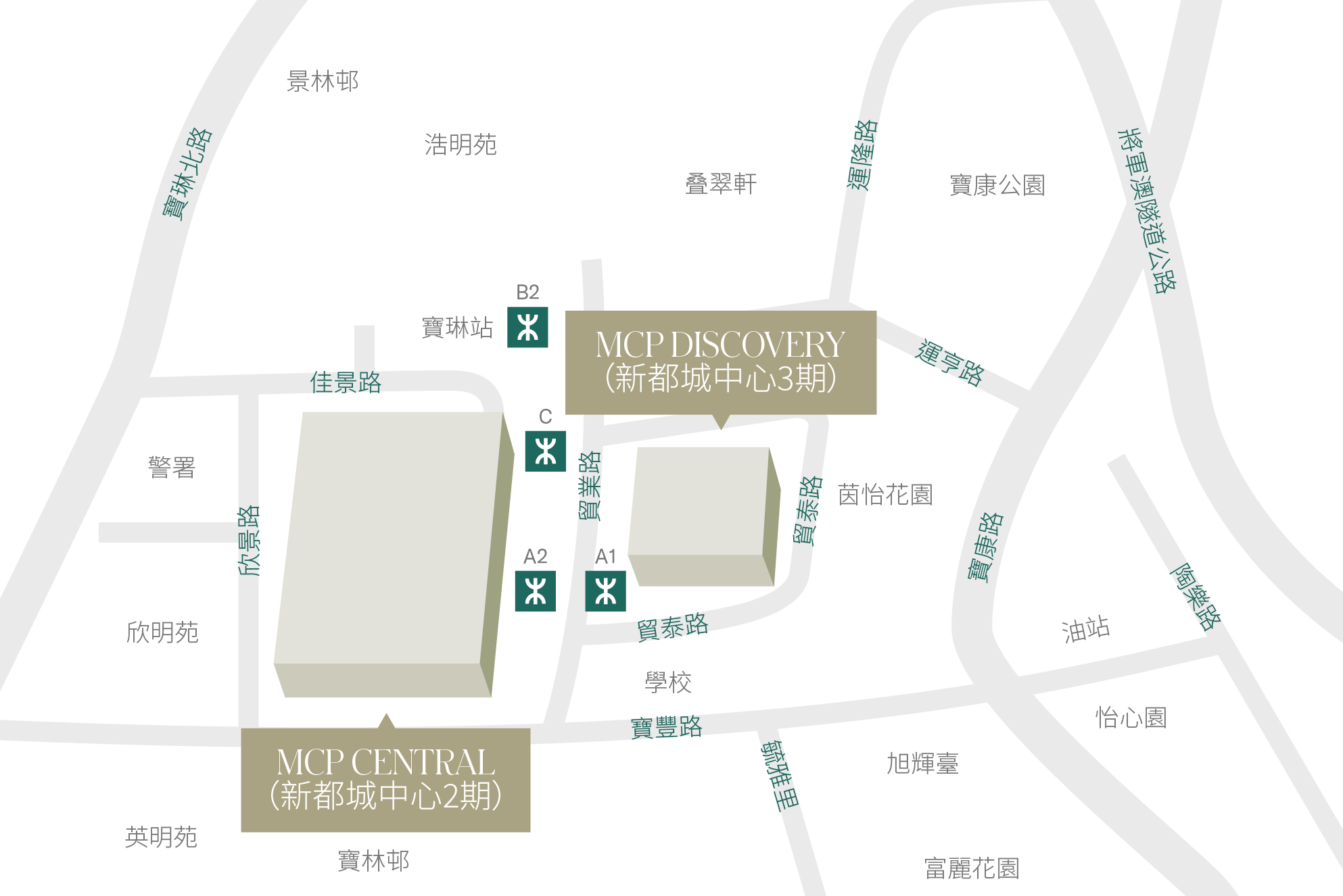 MCP CENTRAL & MCP DISCOVERY (新都城中心2期及3期),一个汇聚餐饮、消闲及娱乐的精彩世界──坐拥100万平方呎广阔空间,并与将军澳宝琳港铁站直接相连,是东九龙最大型的购物商场。