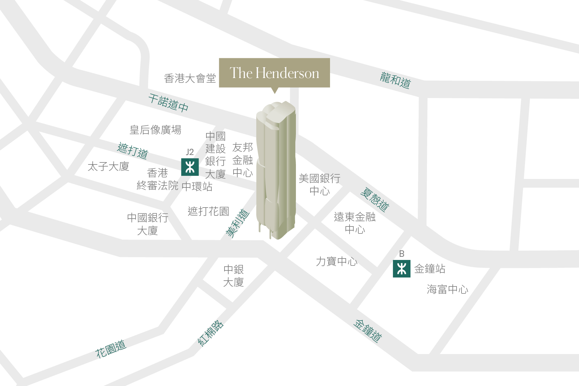 The Henderson座落中環核心商業區,集團銳意將項目打造為國際矚目的「地標中的地標」,並特別委聘了舉世知名的扎哈‧哈迪德建築事務所(Zaha Hadid Architects)設計,預計於2023年正式落成,大樓的總樓面面積為465,000平方呎,樓高 190米,共36層(包括地面) 以及5層地庫的超甲級商廈 。